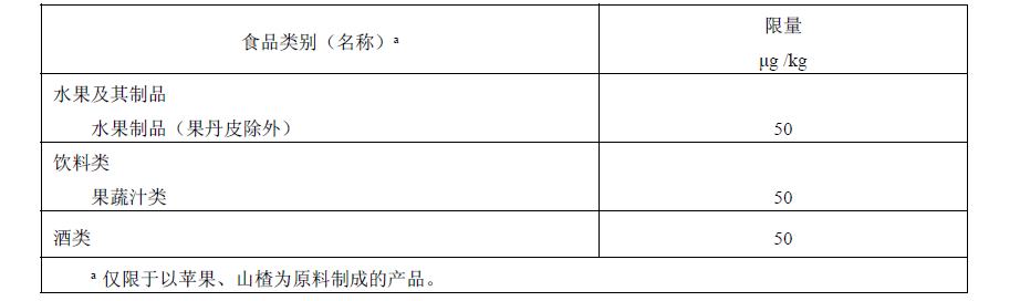 GB2761—2011食品安全國家標準食品中真菌毒素限量規定了食品中展青霉素限量指標。