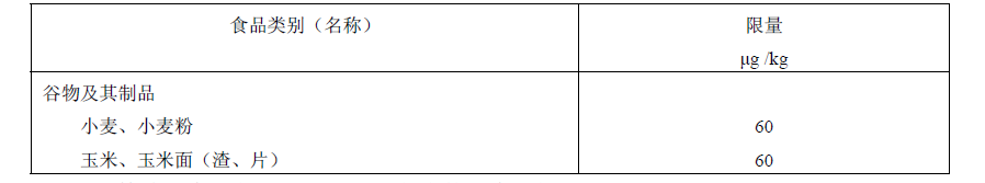 表1食品中玉米赤霉烯酮限量指標(biāo)