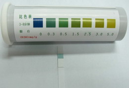 試紙顏色與色卡相同或相近以色卡標示值報告結果。如試紙顏色在兩色卡之間,則取兩者的中間值。國家食品衛生標準BG2716-2005對食用植物油酸價和過氧化值有一個統一的最高限量標準,即植物原油酸價≤4mg KOH/g,食用植物油酸價≤3mg KOH/g;植物原油和食用植物油的過氧化值都要≤0.25g/100g(相當于19.7meq/Kg)。在國家其他標準中實行質量分級管理,詳見下面參考資料。