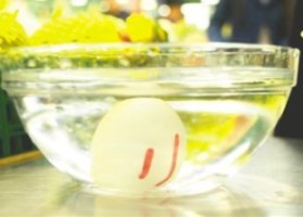 1.2:加入200ml純凈水,將雞蛋放入溶液中,懸浮(不能下沉)的蛋為陳舊或腐壞蛋(試劑可重復使用,用完后蓋上蓋子放于通風干燥處即可)。