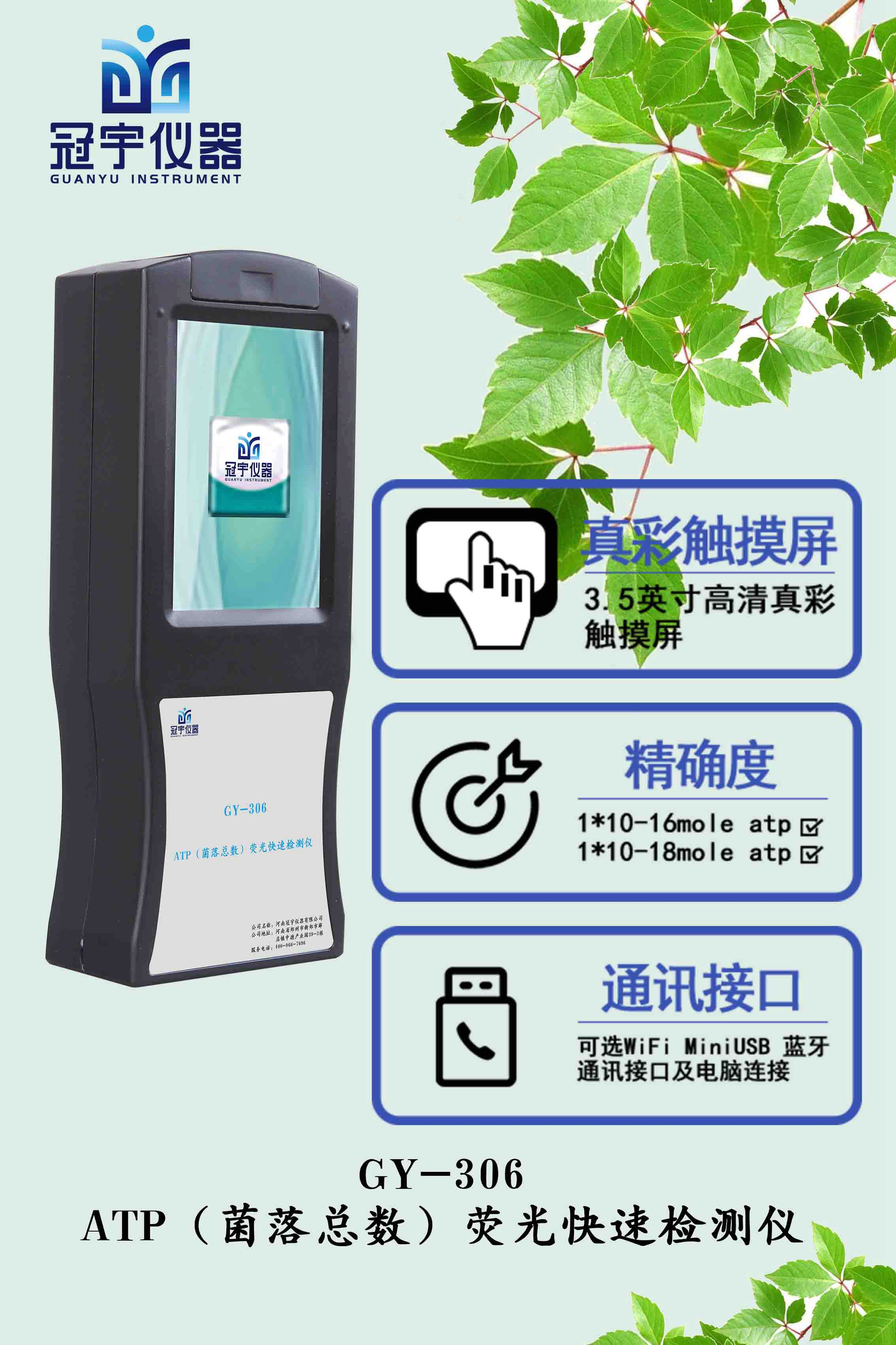 GY-306ATP熒光檢測儀是河南冠宇儀器最新研制的分析測試儀器,冠宇儀器的科研技術人員通過自主研發基于螢火蟲發光原理,利用“熒光素酶—熒光素體系”快速檢測三磷酸腺苷(ATP)。由于所有生物活細胞中含有恒量的ATP,所以ATP含量可以清晰地表明樣品中微生物與其他生物殘余的多少,用于判斷環境、器皿、物品、食品當中的微生物數量,來判斷檢測樣品的衛生情況。