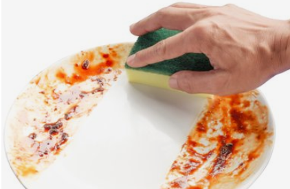 1、刮掉餐具表面殘留的食物殘渣和污垢