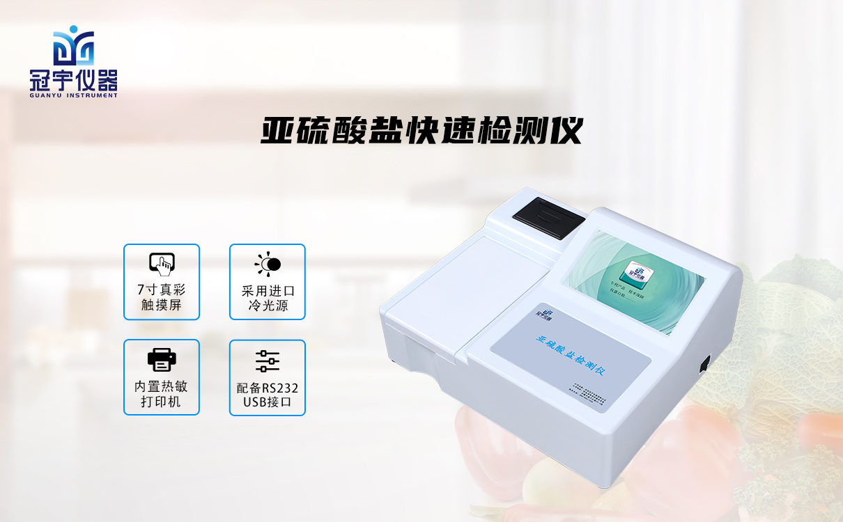 冠宇儀器亞硫酸鹽快速檢測(cè)儀能夠快速檢測(cè)竹筍、蜜餞涼果、餅干、粉絲、白糖、淀粉、陳糧、米粉、烤魚(yú)片、魷魚(yú)絲、蟹肉、魚(yú)糜、魚(yú)干、黃花菜、果脯、巧克力、葡萄酒、啤酒及麥芽飲料等中的亞硫酸鹽含量。適用于食品監(jiān)測(cè)中心、食品生產(chǎn)加工、食品加工貿(mào)易、食品生產(chǎn)廠(chǎng)家自查、工商質(zhì)監(jiān)部門(mén)用于市場(chǎng)快速篩查等。