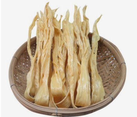 1.正常腐竹皮厚如同一角硬幣,表面為淡黃色,略有光澤。質(zhì)脆易折,條狀折斷有空心。而添加了“吊白塊”的腐竹表面光亮,像打了一層蠟,皮很薄,口感很好,放在嘴里嚼有韌勁,有彈性。