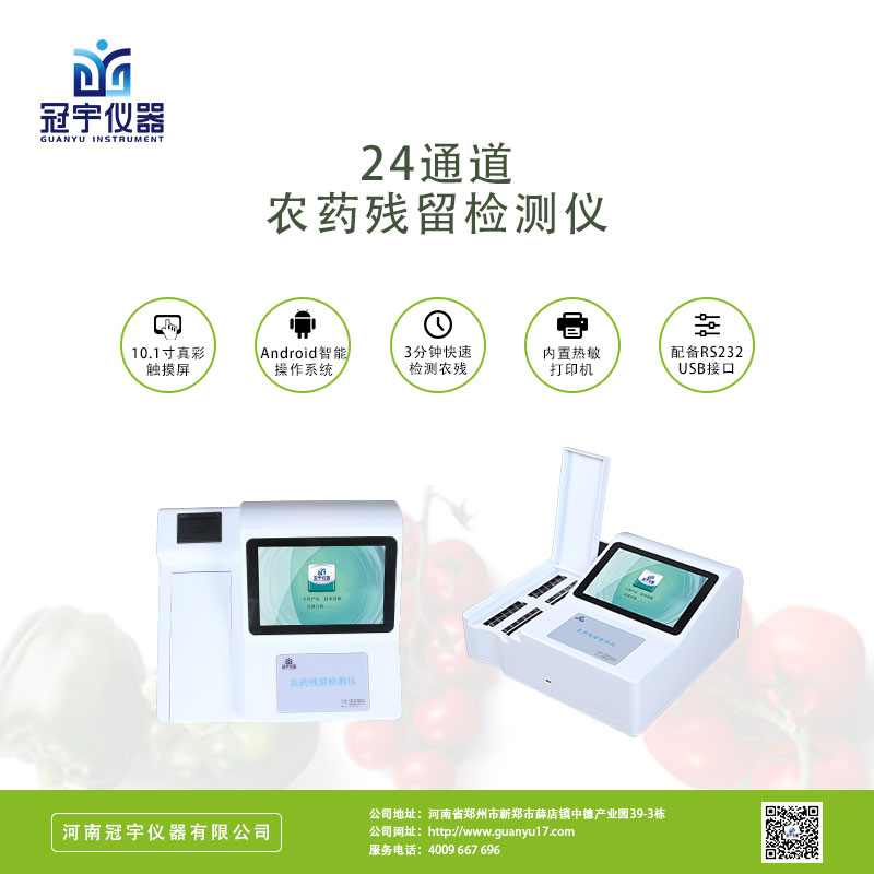 冠宇儀器農藥殘留檢測儀可以對瓜果蔬菜的農藥殘留進行準確的檢測和篩查,杜絕超標的農產品流入市場。可廣泛應用于各級政府蔬菜檢測中心、農貿市場、超市、環(huán)保機構、蔬菜種植基地、飯店、車載及實驗室等食品安全檢測與監(jiān)控場所等單位對果蔬中農藥殘留的檢測。