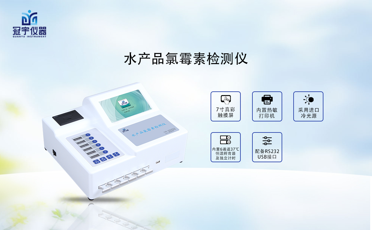 冠宇儀器GY-720水產(chǎn)品氯霉素檢測儀應用競爭抑制免疫層析的原理,通過檢測線熒光定量卡中的熒光強弱程度,定量分析待檢樣品中氯霉素殘留含量。http://www.liulianhotel.cn/products-zh-2622.html