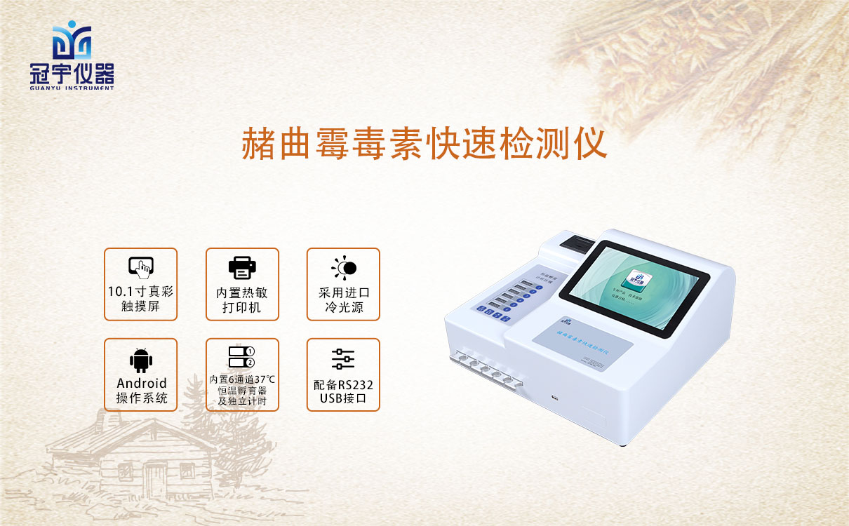 冠宇儀器真菌毒素檢測儀能夠快速定量檢測糧食、飼料、谷物、食用油、調(diào)味品等食品中T2毒素、嘔吐毒素、赭曲霉毒素、伏馬毒素、玉米赤霉烯酮,適用于糧油監(jiān)測中心、糧油飼料生產(chǎn)加工、食品加工貿(mào)易、畜禽養(yǎng)殖戶自查、工商質(zhì)監(jiān)部門用于市場快速篩查等。杜絕赭曲霉毒素超標(biāo)的糧食原料及食品流入市場。造成危害。