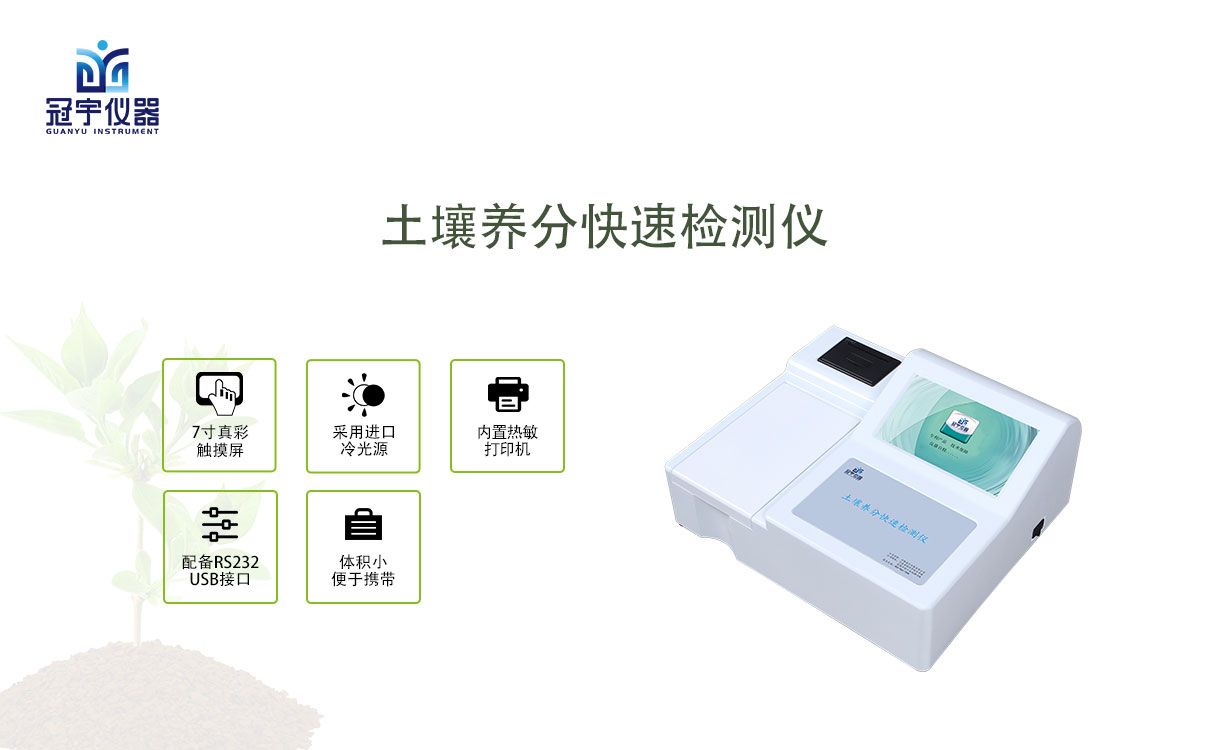 冠宇儀器土壤養分檢測儀能夠快速檢測土壤有機質,土壤中全氮,化肥中全氮,土壤中全磷,化肥中全磷,植物中全磷,土壤中全鉀,化肥中全鉀,土壤中速效氮,化肥中速效氮,土壤中速效磷,化肥中速效磷,植物中全磷,土壤中速效鉀,化肥中速效鉀,氯離子,硝態氮等。