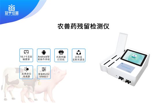 所以食品檢驗部門要加強對農獸藥殘留進行檢測,冠宇儀器農獸藥殘留檢測儀可現場快速檢測農藥殘留(有機磷類農藥殘留、氨基甲酸酯類農藥殘留、菊酯類農藥殘留、有機氯類農藥殘留等)、獸藥殘留(鹽酸克倫特羅、萊克多巴胺、沙丁胺醇、恩諾沙星、氯霉素、磺胺類、喹喏酮類、呋喃類、四環素類、阿莫西林、孔雀石綠、黃曲霉毒素、環丙沙星、紅霉素、土霉素、喹乙醇、已烯雌酚等)。