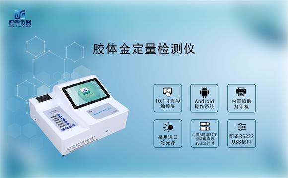 膠體金免疫層分析儀采用現(xiàn)代光電技術(shù)研發(fā)的一種用于定量分析膠體金卡法制成的各類(lèi)檢測(cè)項(xiàng)目試紙條;根據(jù)反射光譜測(cè)試法,膠體金對(duì)特定波長(zhǎng)的光的吸收獲取層析試紙T線和C線上光吸收峰信號(hào),據(jù)此計(jì)算出兩個(gè)峰面積之比(Dr),然后根據(jù)標(biāo)準(zhǔn)濃度和峰面積的比值制作標(biāo)準(zhǔn)曲線,在實(shí)際的測(cè)試過(guò)程中,通過(guò)膠體金免疫層分析儀獲取兩個(gè)峰面積之比,就可以根據(jù)繪制的標(biāo)準(zhǔn)曲線求得待檢項(xiàng)目的定量結(jié)果。