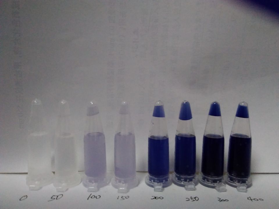2.2:若樣品液中顏色為紫色,卻顏色隨著濃度變色,說明含有碘。(見色卡)