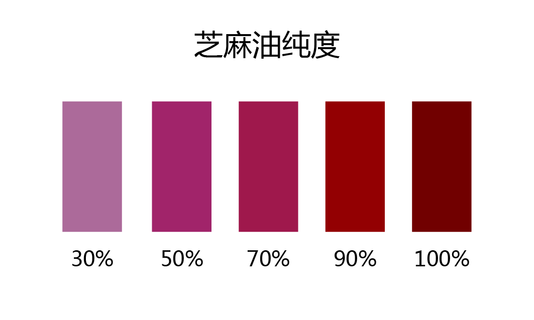 1.3:如果芝麻油的純度在80%以下,此時顯色差異已很明顯。如果差異不明顯時,打開蓋,加入純凈水到離心管近口處,蓋蓋后顛倒20次混勻,在10分鐘內,將樣品管與色卡進行比對。