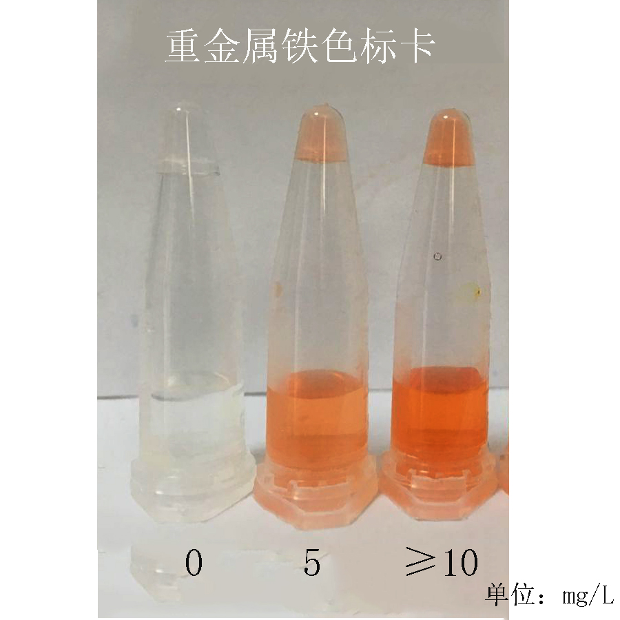 2.2:若溶液呈橙色,說明存在鐵。橙色的深度與含量成正比。(見比色卡)
